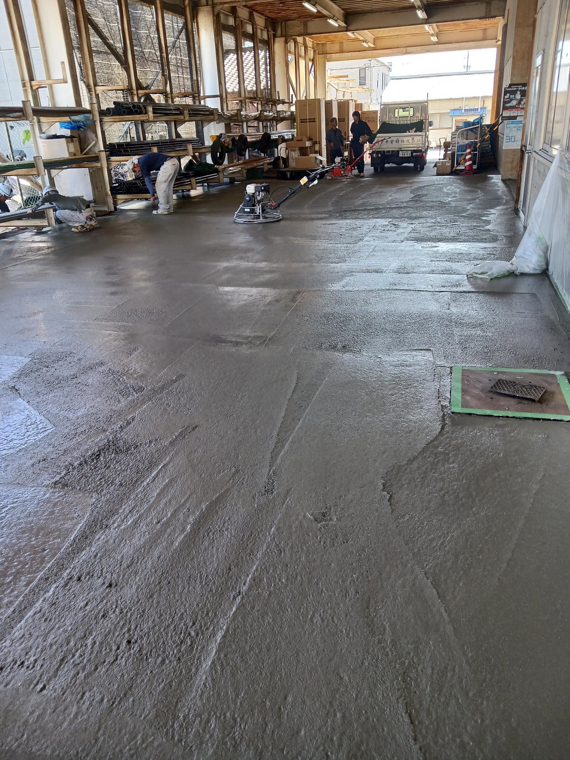 倉庫通路修繕工事のコンクリート打設工事が無事完了いたしました。 天候にも恵まれ、予定どおりの工程で進めることができました。しっかりとした配筋の上にコンクリートを打設し強度と耐久性を確保した仕上がりとなっています。 引き続き安全第一で作業を進めてまいりますので、ご来社の際は足元にご注意いただきますようお願いいたします。