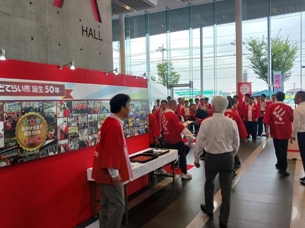 今年は「どてらい市誕生50周年」という記念すべき年であり、会場は例年以上の熱気と活気に満ち溢れていました。 オープニングのテープカットから始まり、会期中はたくさんのお客様で賑わい、皆様のこのイベントにかける期待の大きさを肌で感じることができました。